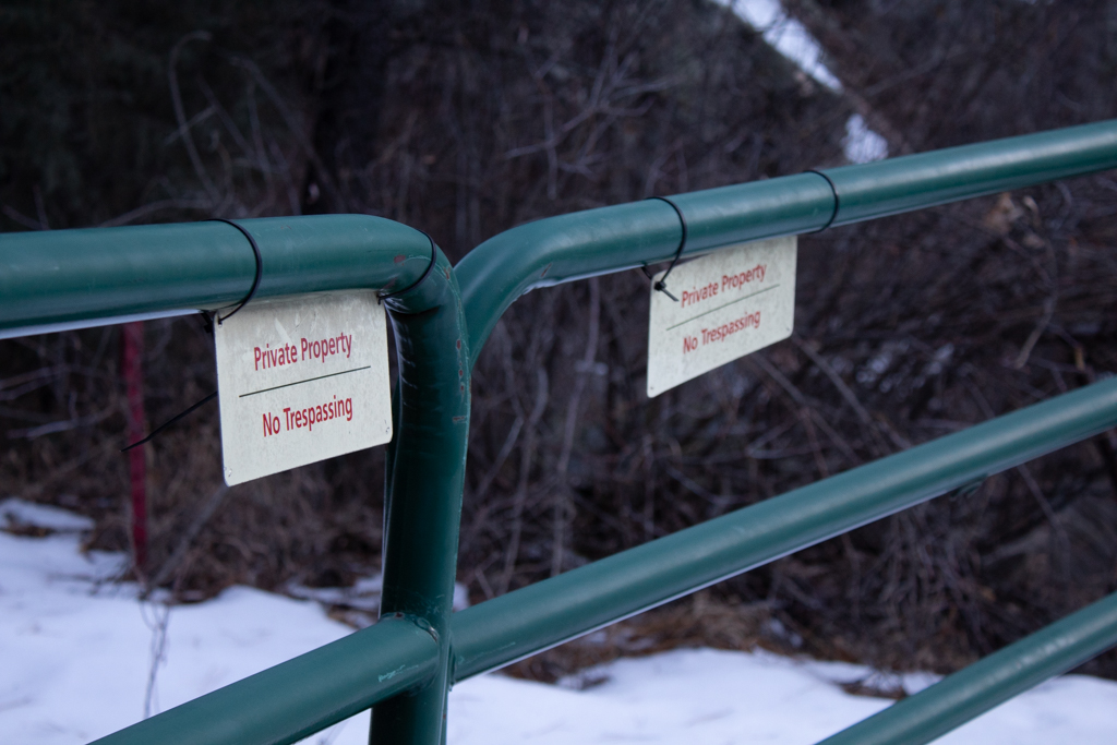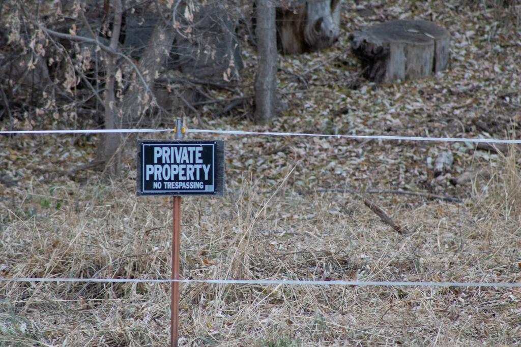 The second part of the project was making the map. The construction of the map engaged deeply with the third phonographic filter of performance: I recorded “traces” of locations and rendered them in an audio-visual score intended to produce a relational component to the land. By juxtaposing images created at different locations in a triptych format, I am able to more deeply communicate my own experience of listening to the land and demonstrate the narrative that I heard emerge from the land. Signs establishing territorial rules, themes of dispossession and ownership seemed particularly prevalent and necessary to include.