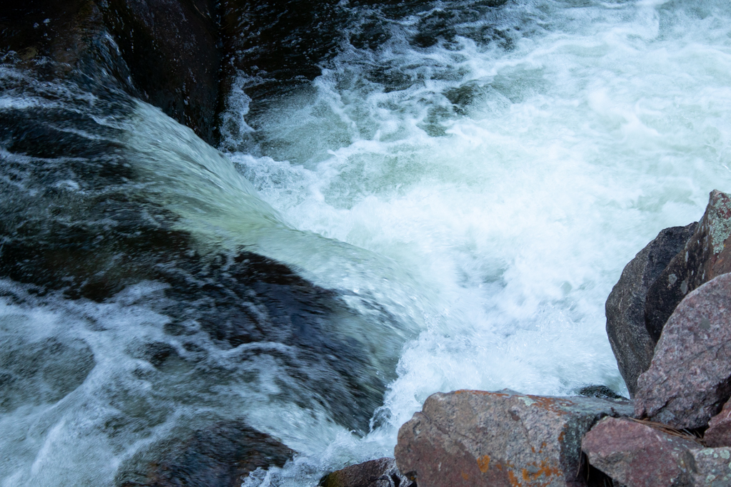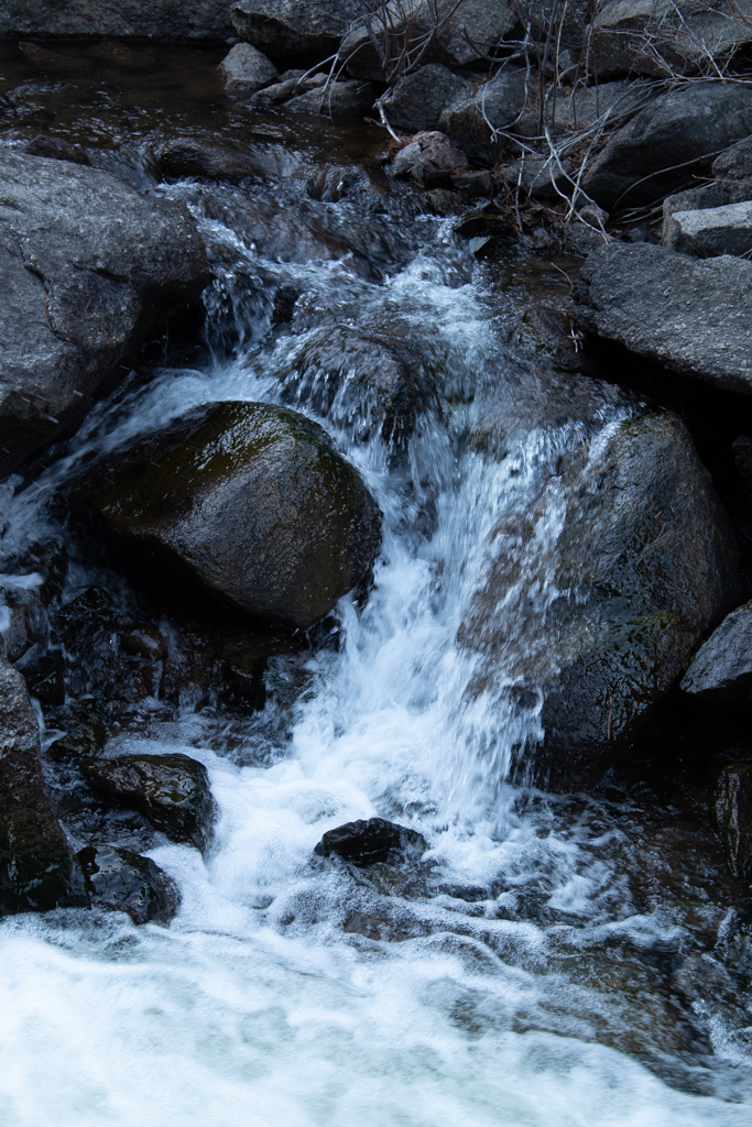 There were two parts to this project. The first was the recording of sound and image along Boulder Creek, and the second was the act of turning sound and image into a cartophonic video map. Recorded and photographed at different times of day and the year, the sounds in my map generally follow Boulder Creek, starting with its smaller inflowing streams that eventually flow together to form Boulder Creek. Middle Boulder Creek is paired aurally with South Boulder Creek as they flow west to east. Middle Boulder Creek links with North Boulder Creek at Boulder Falls, where it first receives the label of “Boulder Creek.” Boulder Creek links with South Boulder Creek much farther east, after the water travels separately through the township of Boulder, Colorado. Boulder Creek continues to flow East until it connects with the Platte River.