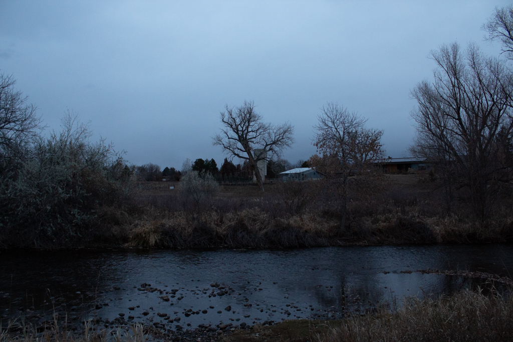 Through the process of recording sounds and photographs, I immediately realized the limitations of Gallagher and Prior’s first described filter of capture and reproduction. Hi-fidelity audio recordings that seek to capture “sound” and eliminate “noise” tend to pretend the recorder is not present. Two issues arise from this logic. The first being the recorder’s own selective bias of what sounds and images are important to record. In the field, I was forced to confront questions of where to go, and what sounds I should record. Are crows cawing more or less important than the sound of an American flag waving in the wind? The second problem with this filter is the assumption that the recorder’s presence does not in some way alter or affect the sound space they occupy. One such example of this is that as I was recording by Barker Reservoir, a dog walked over to me and started growling.
